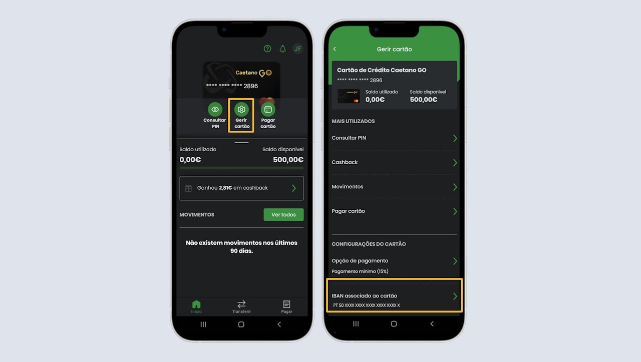 Nas configurações do Cartão, vai encontrar e selecionar a opção IBAN associado ao cartão;