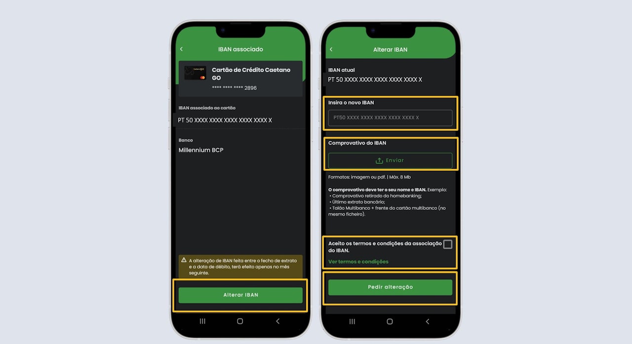 Por fim, insira o novo IBAN, o comprovativo do mesmo e aceite os termos e condições gerais;