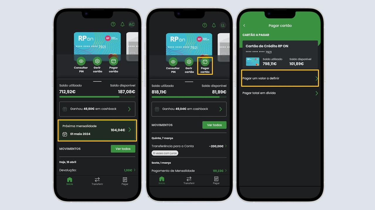 Por fim, terá acesso à entidade e referência do seu cartão e poderá regularizar o valor que aparece na área Próxima Mensalidade.