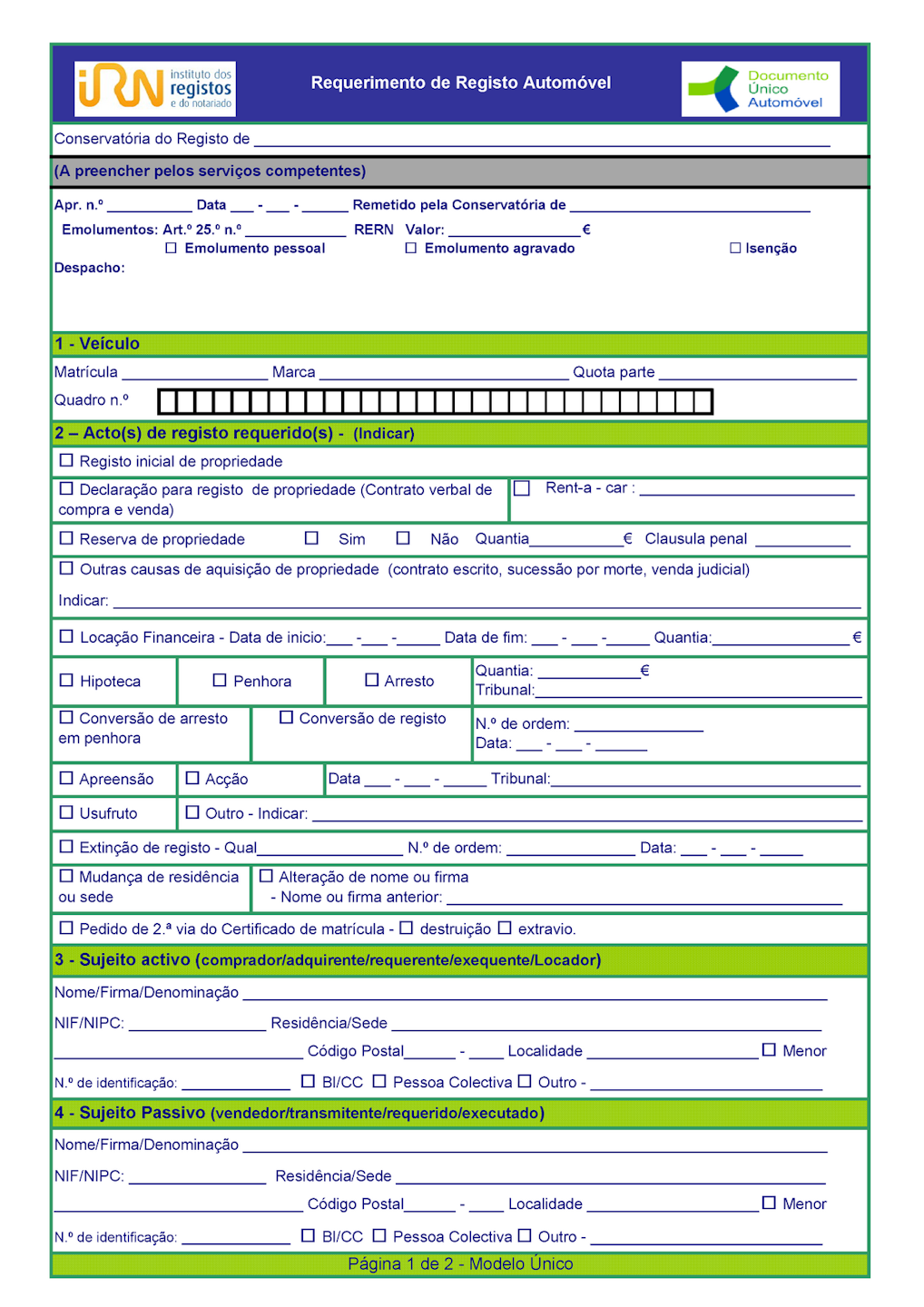 Após receber o Modelo Único, deve dirigir-se à Conservatória do Registo Automóvel, num prazo máximo de 60 dias, juntamente com o seu documento de identificação para proceder à legalização do veículo.